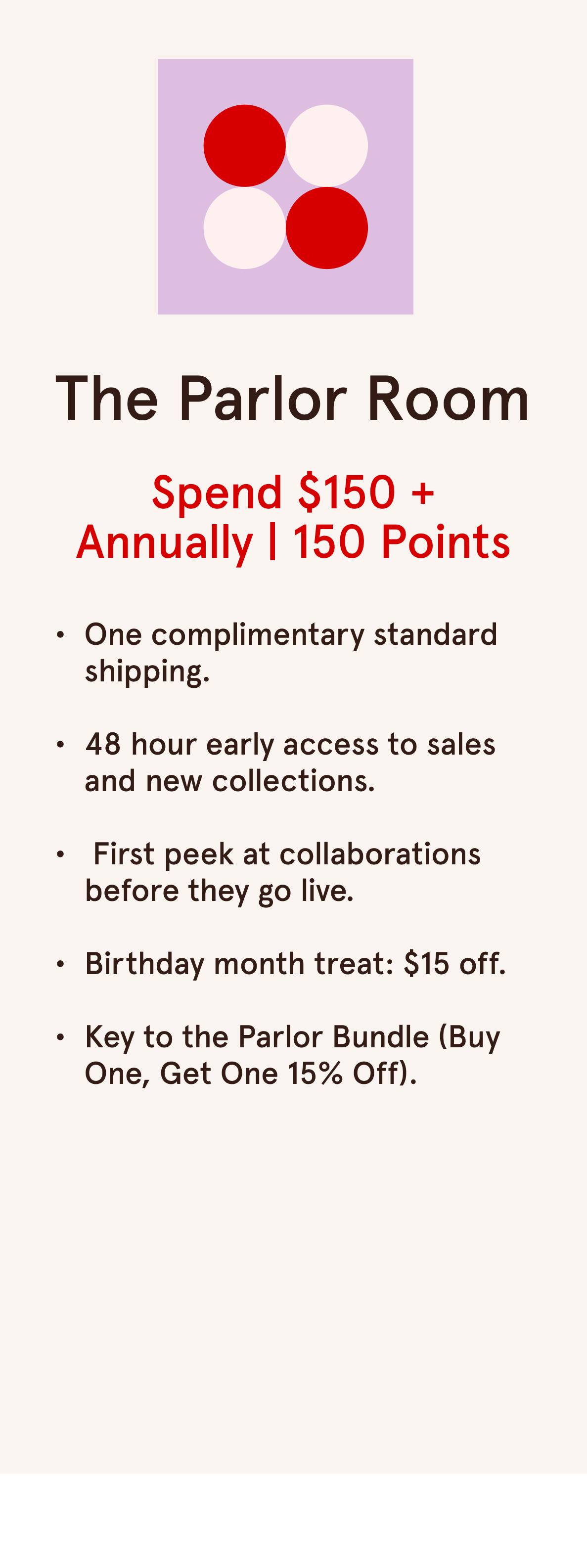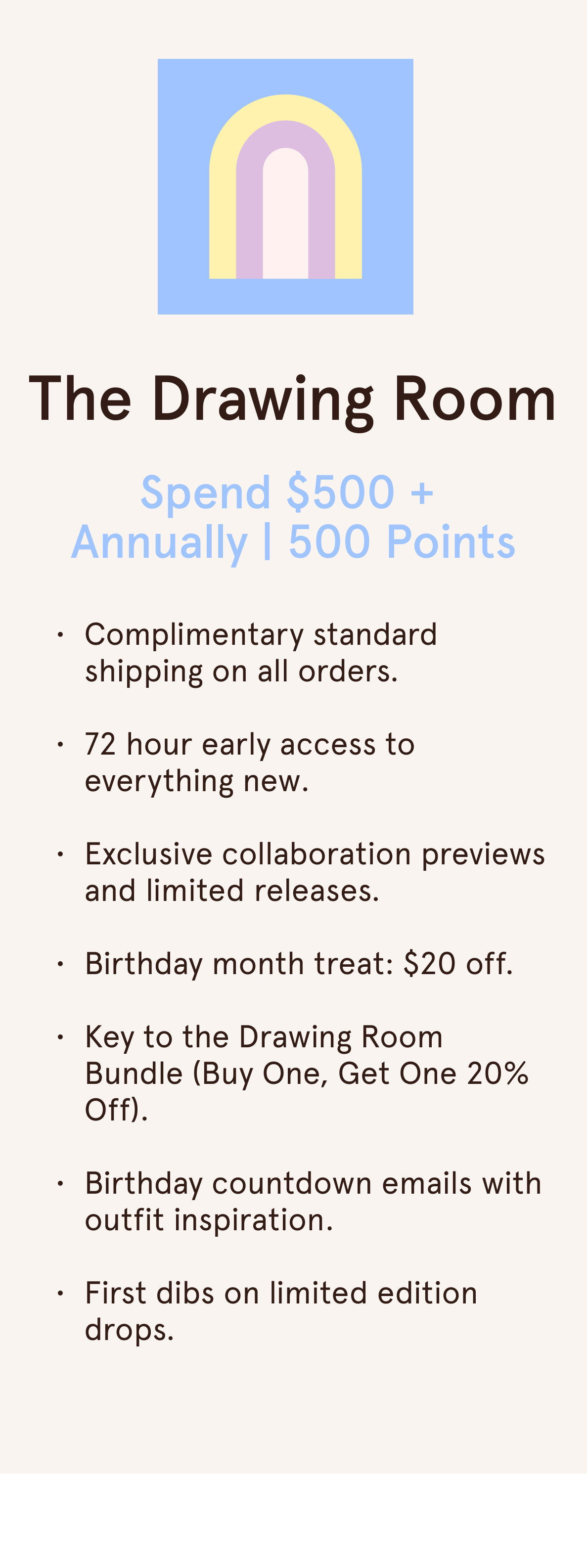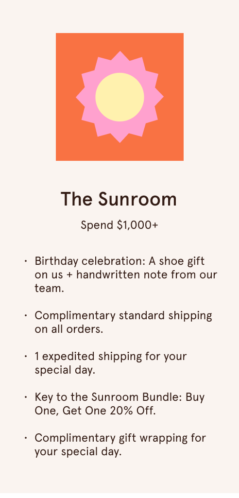 Free shipping. Birthday discounts. Early access to new arrivals. The perks get better with each room, and every purchase brings you closer to something special.